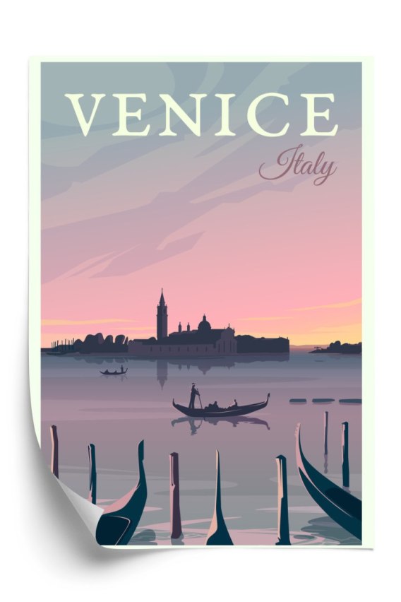 Plakat Zachód Słońca W Wenecji Z Gondolami