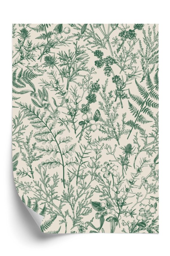 Plakat Zielone Rośliny Na Beżowym Tle Botaniczny Wzór