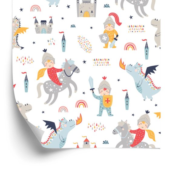 Tapeta Bajkowa Dla Dzieci, Zamek, Smoki, Rycerze