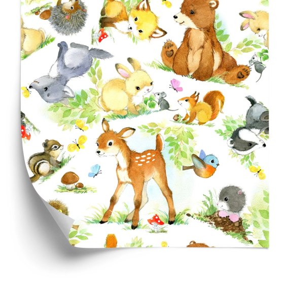 Tapeta Bajkowa Dla Dzieci, Zwierzęta Leśne, Liście