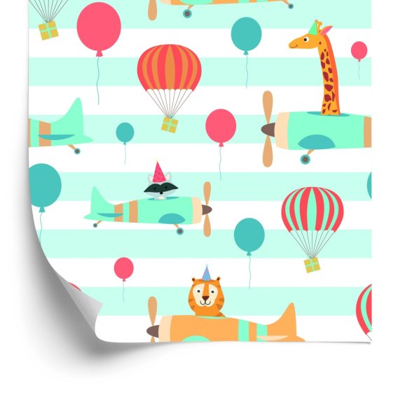 Tapeta Balony Samoloty Zwierzątka, Pokój Dziecięcy