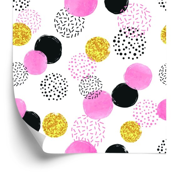 Tapeta Czarne, Różowe I Żółte Groszki