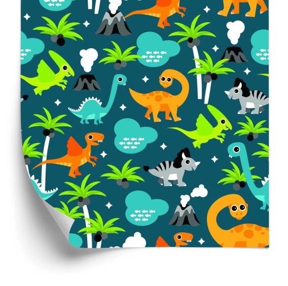 Tapeta Dla Chłopca Kolorowe Zwierzęta Palmy Wulkan