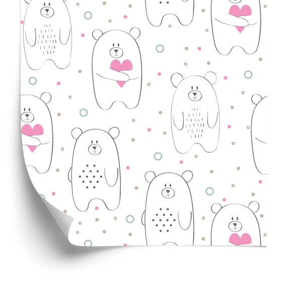 Tapeta Dla Dzieci - Białe Misie Z Różowymi Serduszkami