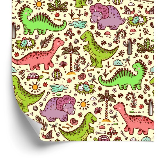 Tapeta Dla Dzieci Dinozaury Kwiaty Kaktusy Drzewa