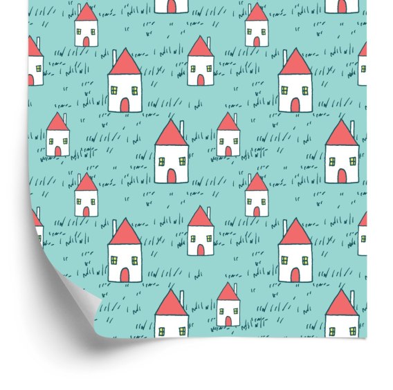 Tapeta Dla Dzieci - Domki Z Czerwonymi Daszkami