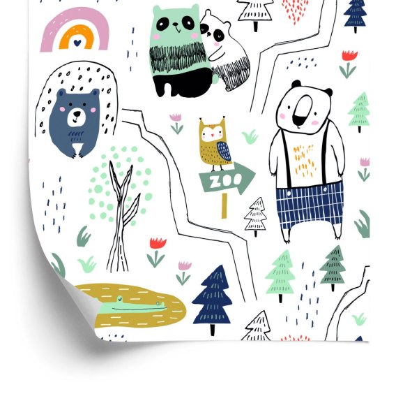 Tapeta Dla Dzieci - Dzikie Zwierzątka - Styl Skandynawski