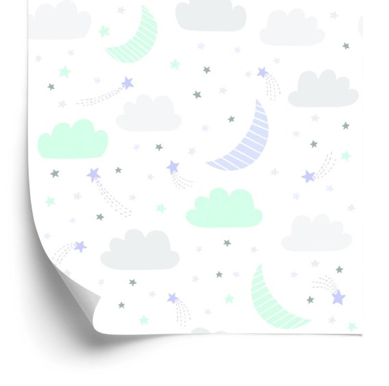 Tapeta Dla Dzieci - Gwiazdki, Chmurki I Księżyce W Pastelowych Kolorach