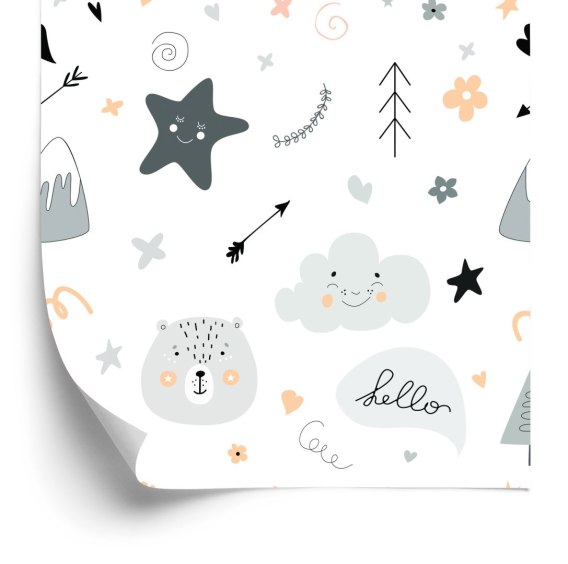 Tapeta Dla Dzieci Gwiazdy Chmury Styl Skandynawski