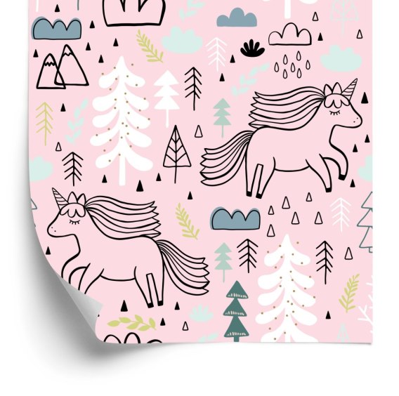 Tapeta Dla Dzieci - Jednorożce Na Tle Gór, Drzew I Chmur