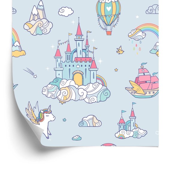 Tapeta Dla Dzieci Jednorożce Z Bajki, Zamek, Tęcza