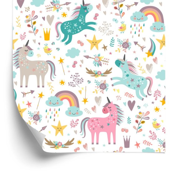 Tapeta Dla Dzieci - Kolorowe Jednorożce W Stylu Skandynawskim