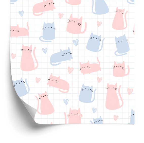 Tapeta Dla Dzieci - Kolorowe Kotki I Serduszka