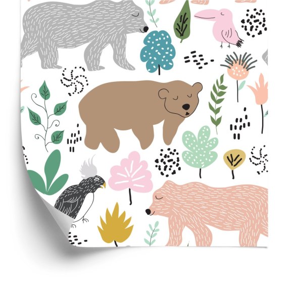 Tapeta Dla Dzieci - Kolorowe Niedźwiadki I Ptaszki
