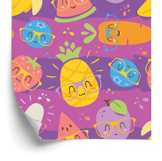 Tapeta Dla Dzieci - Kolorowe Owoce I Warzywa W Okularach