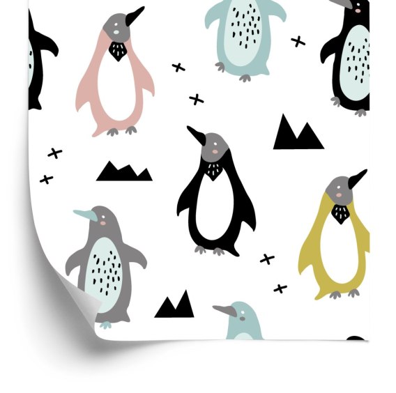 Tapeta Dla Dzieci - Kolorowe Pingwinki W Stylu Skandynawskim