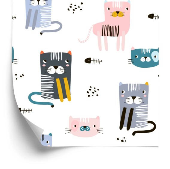 Tapeta Dla Dzieci Kolorowe Zabawne Kotki Bajka 3D
