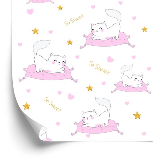 Tapeta Dla Dzieci - Kotki, Gwiazdki I Serduszka