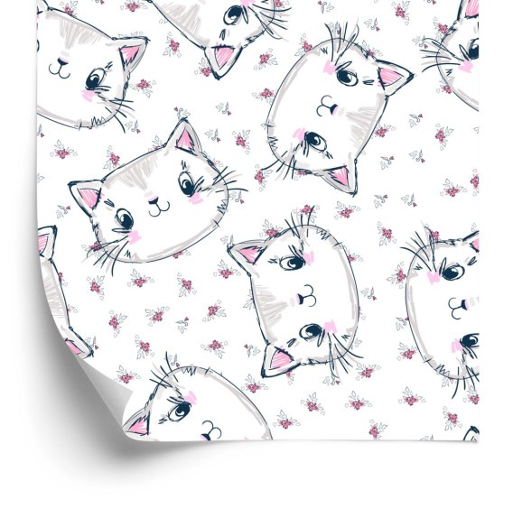Tapeta Dla Dzieci - Kotki I Kwiaty