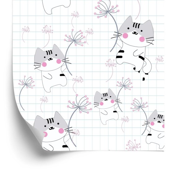 Tapeta Dla Dzieci - Kotki I Kwiaty