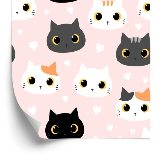 Tapeta Dla Dzieci - Kotki I Serduszka