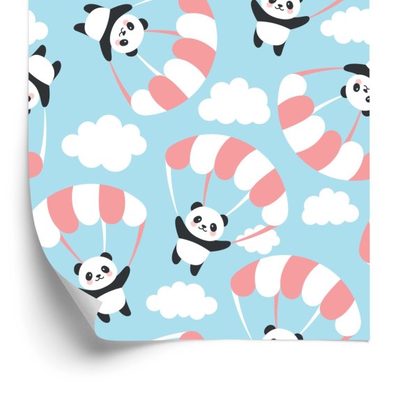 Tapeta Dla Dzieci - Latająca Panda Wśród Chmur