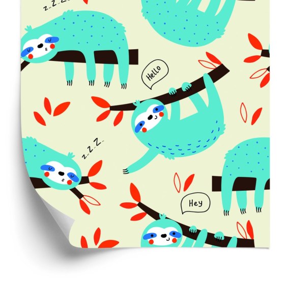 Tapeta Dla Dzieci Leniwce Liście Styl Skandynawski