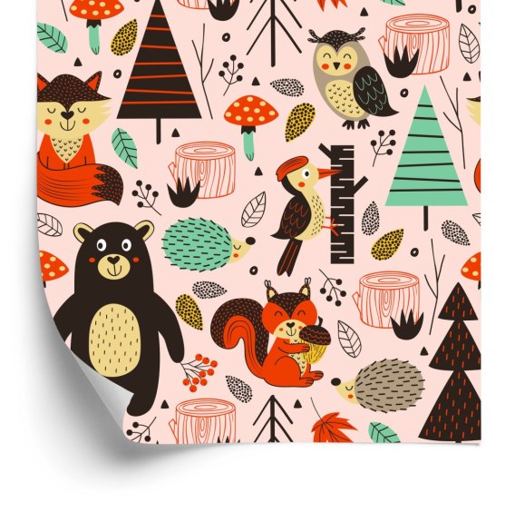 Tapeta Dla Dzieci - Leśne Zwierzątka W Stylu Skandynawskim