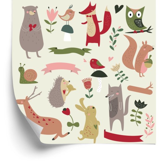 Tapeta Dla Dzieci - Leśne Zwierzęta I Serduszka