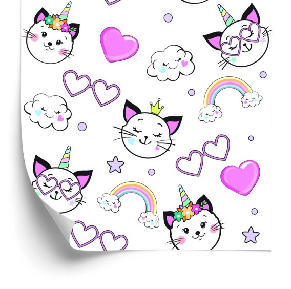 Tapeta Dla Dzieci - Małe Kotki, Serduszka I Gwiazdki