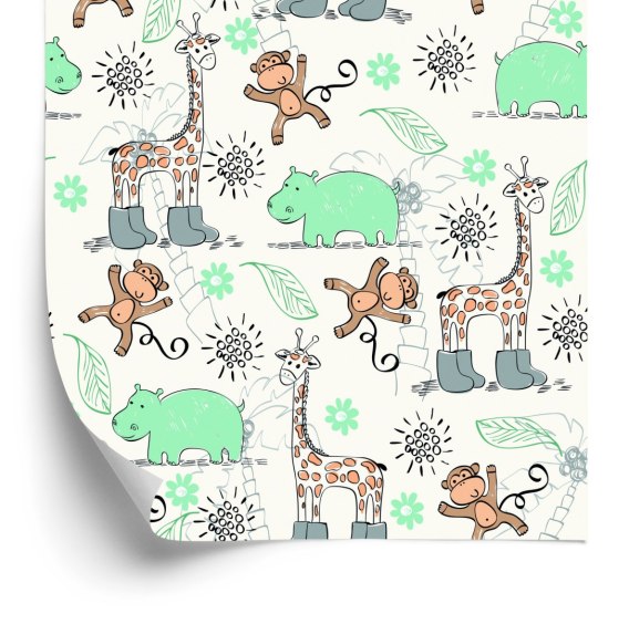 Tapeta Dla Dzieci - Małpki, Żyrafy I Hipopotamy