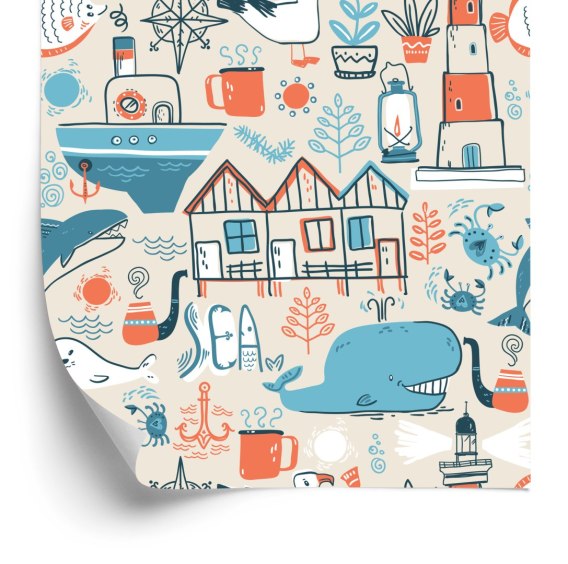 Tapeta Dla Dzieci - Morskie Zwierzęta - Styl Skandynawski
