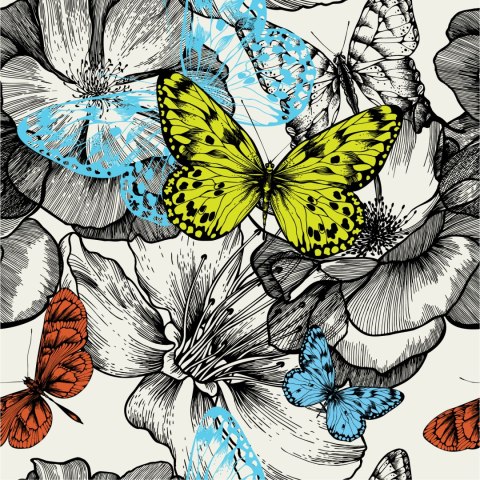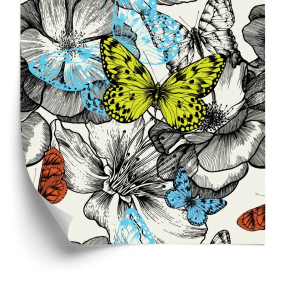 Tapeta Dla Dzieci - Motyle Wśród Kwiatów