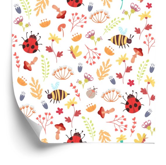 Tapeta Dla Dzieci - Pszczółki, Motylki, Biedronki I Jesienne Rośliny
