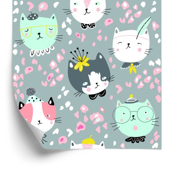 Tapeta Dla Dzieci - Rozmarzone Kolorowe Kotki