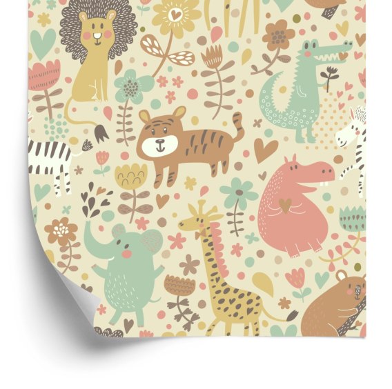 Tapeta Dla Dzieci Safari Słonie Lwy Zebry Rośliny