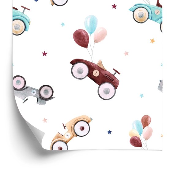 Tapeta Dla Dzieci - Samochody Retro Malowane Akwarelą