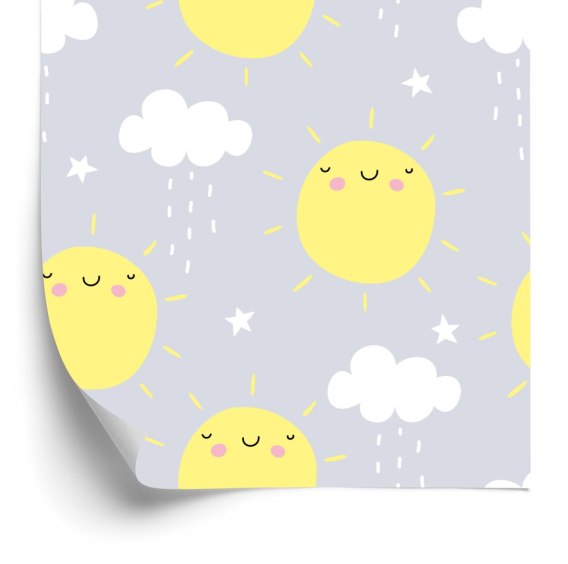 Tapeta Dla Dzieci - Słoneczka I Deszczowe Chmurki