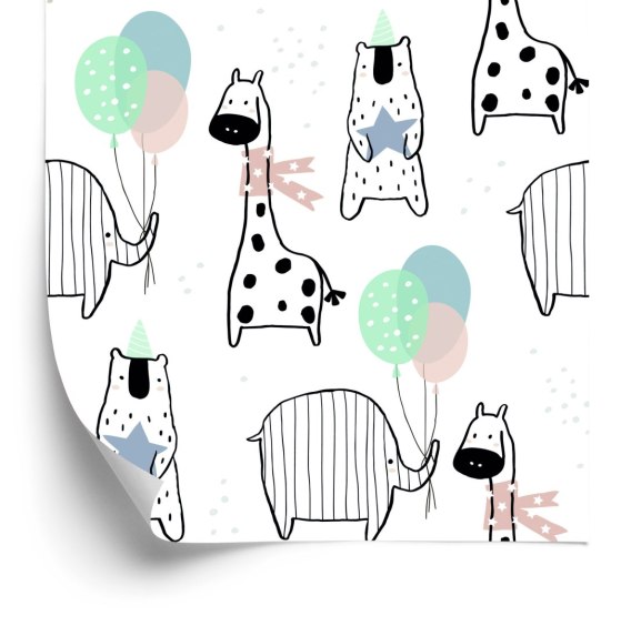 Tapeta Dla Dzieci - Słonik, Żyrafa, Miś
