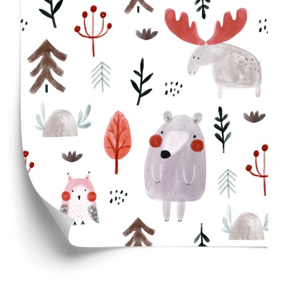 Tapeta Dla Dzieci - Sowa, Łoś I Niedźwiedź