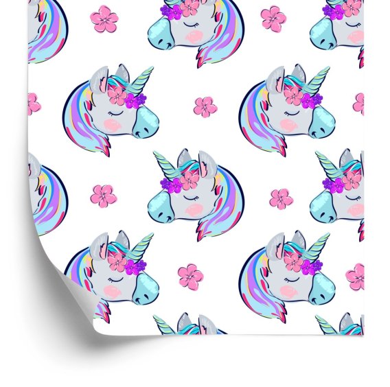 Tapeta Dla Dzieci - Śpiące Jednorożce Na Tle Kwiatów