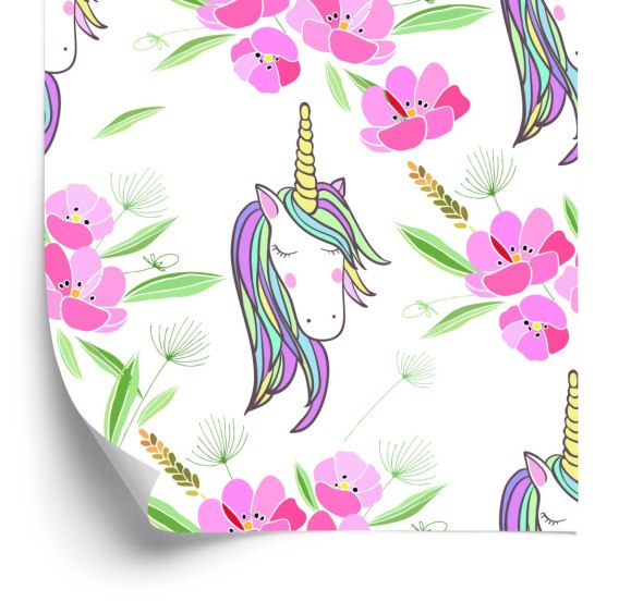 Tapeta Dla Dzieci - Śpiące Jednorożce Na Tle Kwiatów