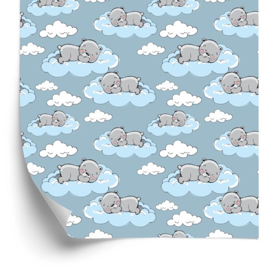 Tapeta Dla Dzieci - Śpiące Misie Wśród Chmur