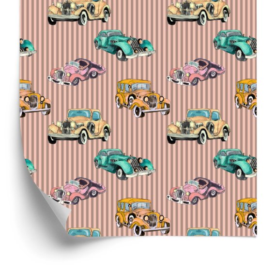 Tapeta Dla Dzieci - Starodawne Kolorowe Auta Malowane Akwarelą