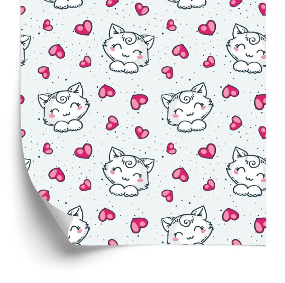 Tapeta Dla Dzieci - Urocze Białe Kotki I Serduszka