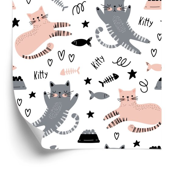 Tapeta Dla Dzieci-Urocze Kotki-Styl Skandynawski