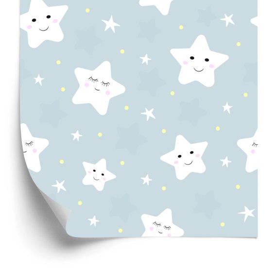 Tapeta Dla Dzieci - Uśmiechnięte Białe Gwiazdki