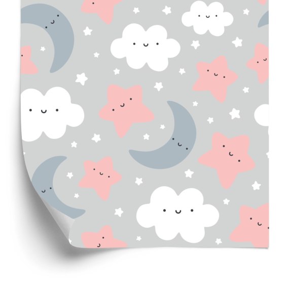 Tapeta Dla Dzieci - Uśmiechnięte Chmurki I Gwiazdki