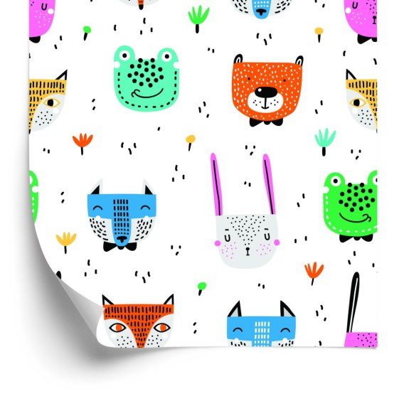 Tapeta Dla Dzieci - Wesołe Kolorowe Leśne Zwierzątka W Stylu Skandynawskim