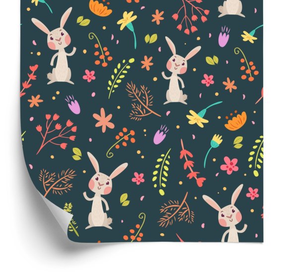 Tapeta Dla Dzieci - Zajączki Wśród Leśnych Roślin